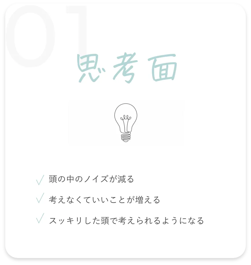 モノ/予定/習慣/思考の癖/感情の持ち方/人との関係性