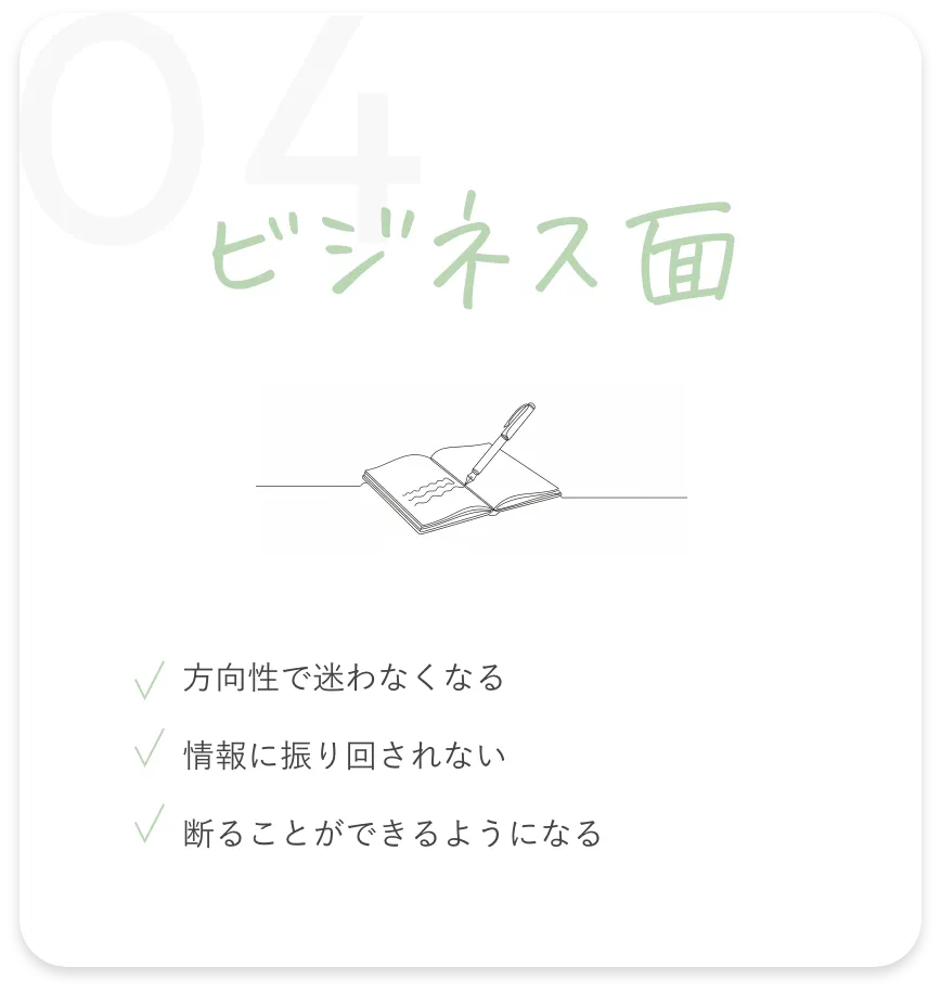 まったく問題ありません。このプログラムは、スキルやノウハウを詰め込む場ではなく、思考と判断の土台を整える時間です。経験年数に関係なく、「自分の軸を取り戻したい人」なら参加できます。